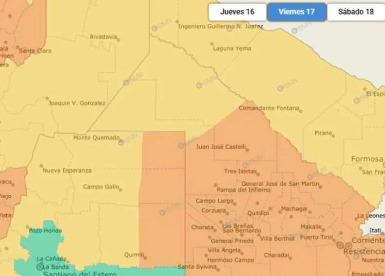 El Servicio Meteorológico Nacional renovó el alerta naranja para gran parte de la provincia del Chaco este viernes, advirtiendo lluvias fuertes, tormentas y fenómenos meteorológicos que pueden resultar peligrosos para la sociedad, los bienes y el medio ambiente. La medida cubre múltiples departamentos ante la persistencia de actividad inestable.