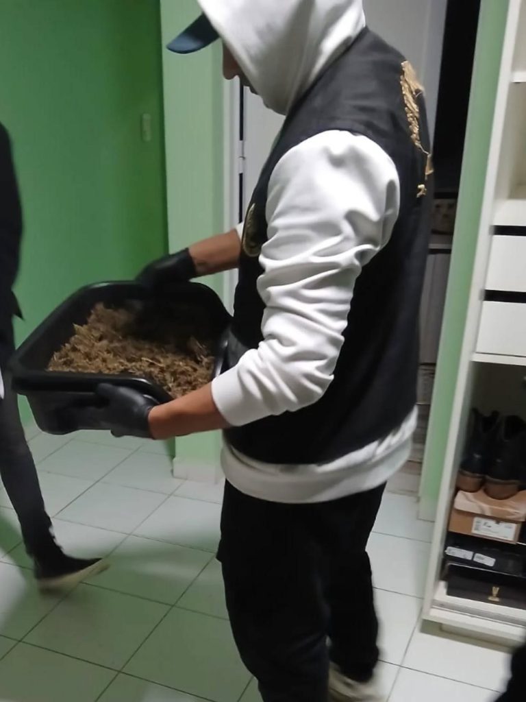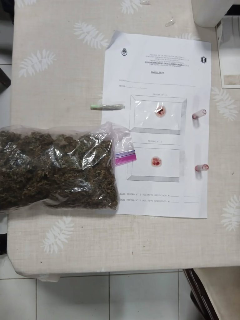 De manera coordinada, se intervino en otro domicilio ubicado en la esquina de calle Güemes, donde los investigadores hallaron semillas y restos de sustancias prohibidas. Como resultado de ambos procedimientos, un hombre de 46 años fue aprehendido y trasladado a la dependencia policial.