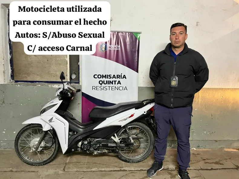 La detención del hombre, de 55 años y domiciliado en la zona, se concretó alrededor de las 19 h en avenida Chaco y pasaje Fortín Loma Negra. En el procedimiento, la Policía secuestró la motocicleta Honda Wave blanca de 110 cc y un teléfono celular Samsung A15 color azul metálico, que serán peritados como parte de la causa.