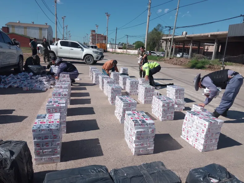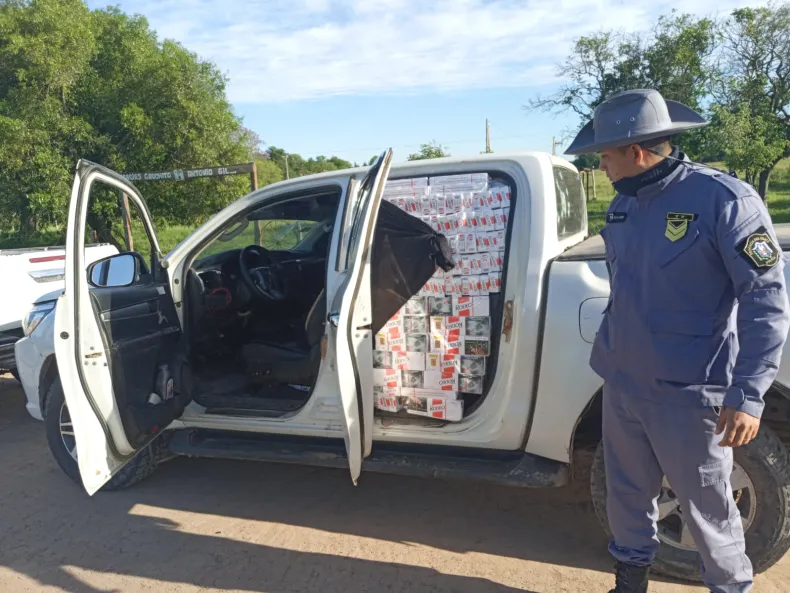 Un operativo conjunto entre la Gendarmería Nacional y la Policía Rural del Departamento de Seguridad Rural General San Martín culminó esta mañana en la localidad de Presidencia Roca (Chaco) con el secuestro de una camioneta abandonada y más de 40 cajas de cigarrillos de contrabando. El hecho comenzó tras la orden de detener un vehículo que circulaba por un camino vecinal vinculado a la Ruta Provincial 3, y concluyó con la fuga de los ocupantes y el hallazgo de la carga ilegal.