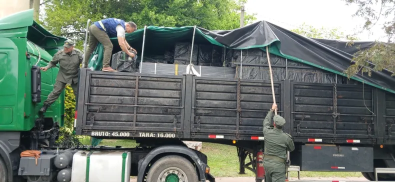 En un control sobre la Ruta 11, se incautaron 250.000 atados de cigarrillos de contrabando ocultos bajo carga declarada como hierros metálicos