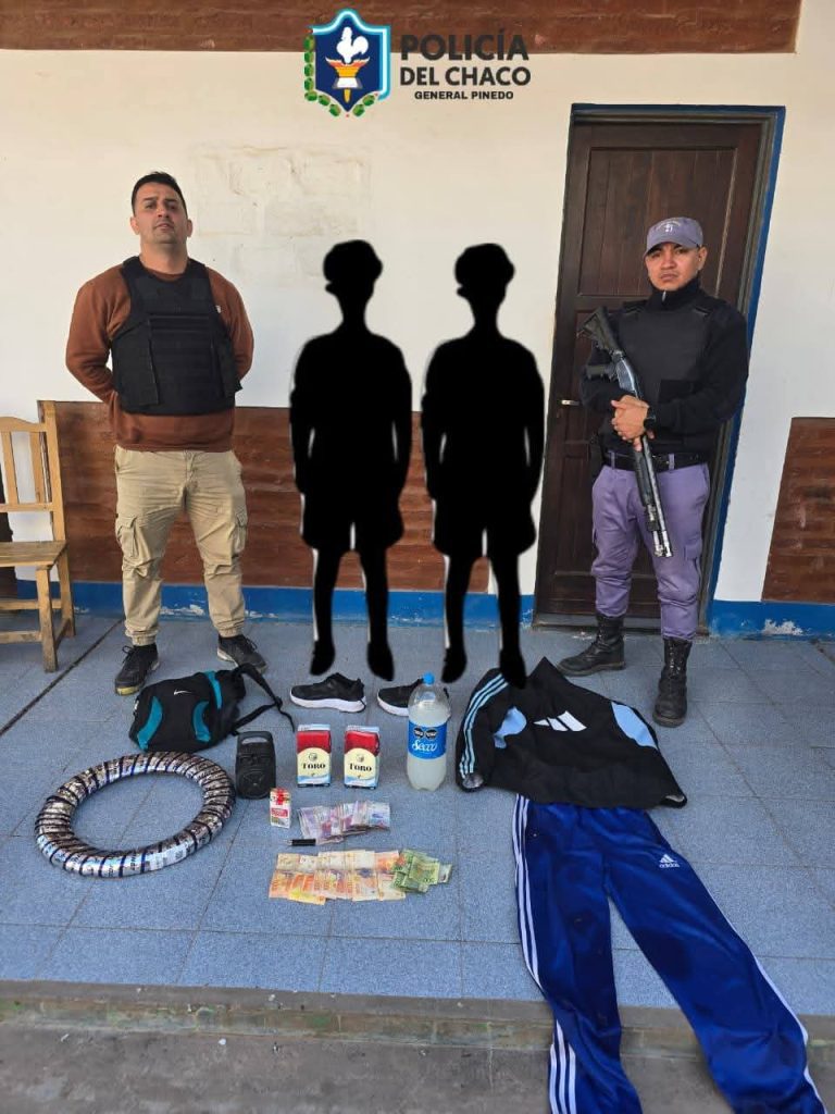 En un eficaz procedimiento realizado este miércoles, efectivos de la comisaría de General Pinedo lograron aprehender a dos jóvenes y recuperar diversos elementos robados del kiosco «Maira 2». El local, situado en calle 000 entre 18 y 20, fue blanco de un robo que quedó registrado íntegramente por los sistemas de vigilancia.