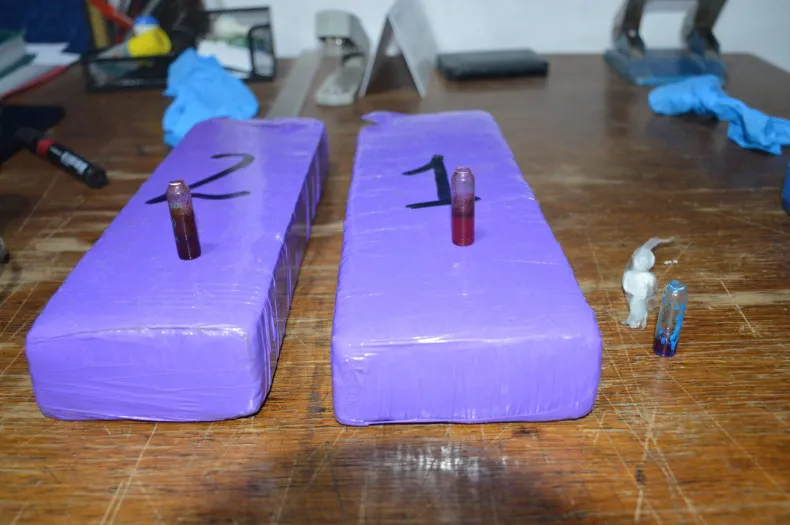 Según informaron fuentes de la investigación, los efectivos detuvieron la marcha de un vehículo para una verificación rutinaria. Durante la identificación de los ocupantes, notaron movimientos extraños y un evidente nerviosismo, lo que motivó una requisa más exhaustiva. Fue en ese momento cuando descubrieron que uno de los acompañantes llevaba dos paquetes envueltos con cinta violeta pegados a su cuerpo.