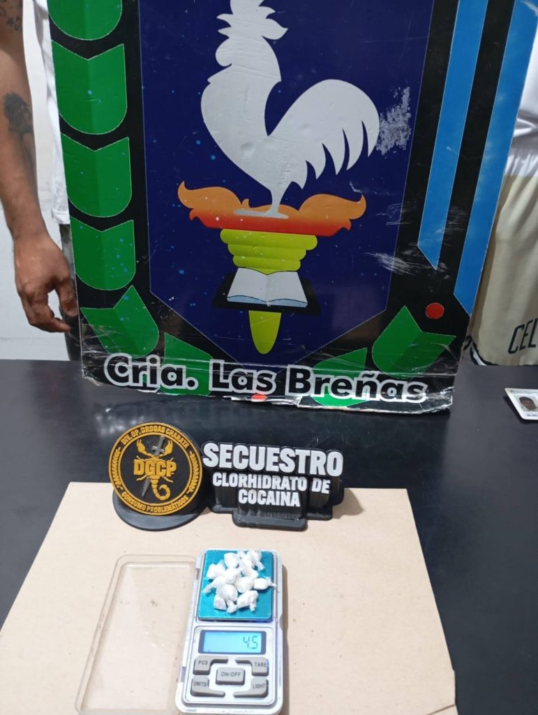 Cerca de la 01:10 horas, los efectivos interceptaron a dos sujetos en la calle Chile, entre las cortadas 4 y 5. Al realizar la requisa, se constató que tenían en su poder 13 envoltorios de cocaína, con un peso total de 4,5 gramos, listos para su comercialización, además de la suma de $80.000 en efectivo y un teléfono celular.