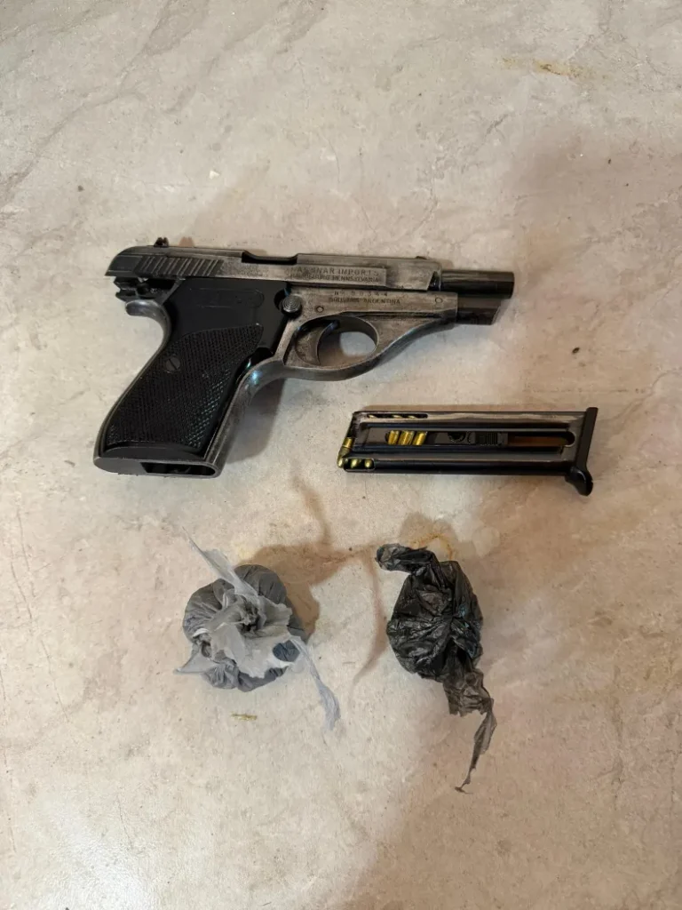 Al iniciar la inspección ocular del inmueble, los agentes hallaron sobre un ropero una pistola calibre .22 marca Bersa, la cual contenía seis proyectiles en su cargador y se encontraba apta para el disparo.