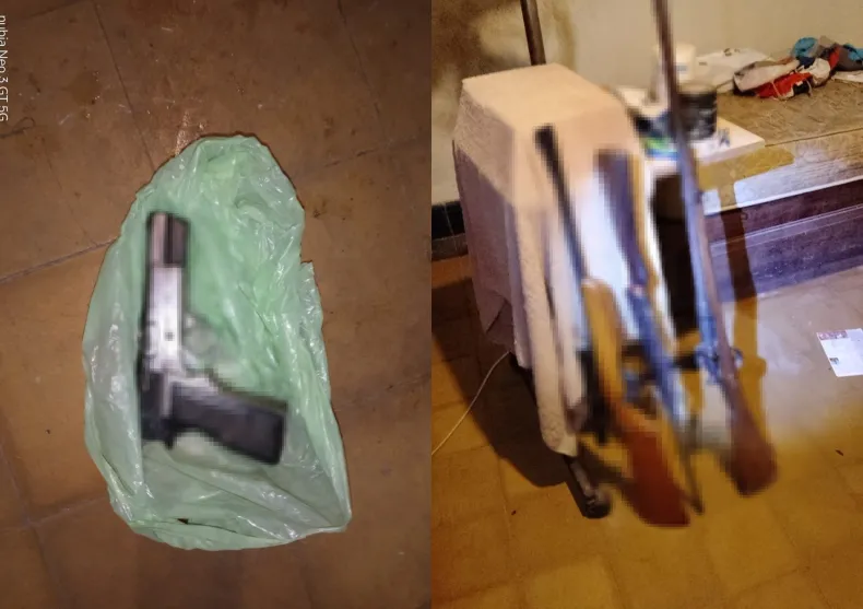 En el registro de la propiedad, los especialistas incautaron 6 plantas y 6 plantines de marihuana, además de una bolsa con cogollos y restos de la misma sustancia. El despliegue continuó con la entrega de un verdadero arsenal que el hombre guardaba en la vivienda.