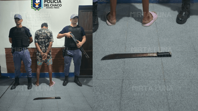 Alrededor de las 20:30, efectivos policiales aprehendieron a J.D.G. (25) en la intersección de calles 8 y 21. El sujeto fue denunciado por molestar a transeúntes portando un machete, el cual fue secuestrado. Quedó alojado por infracción al Código de Faltas (desorden y portación de armas) a disposición del Juzgado de Paz local.