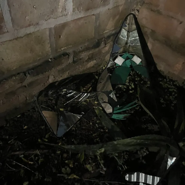 [Imagen: Vidrios y objetos rotos esparcidos en el suelo de la vivienda]