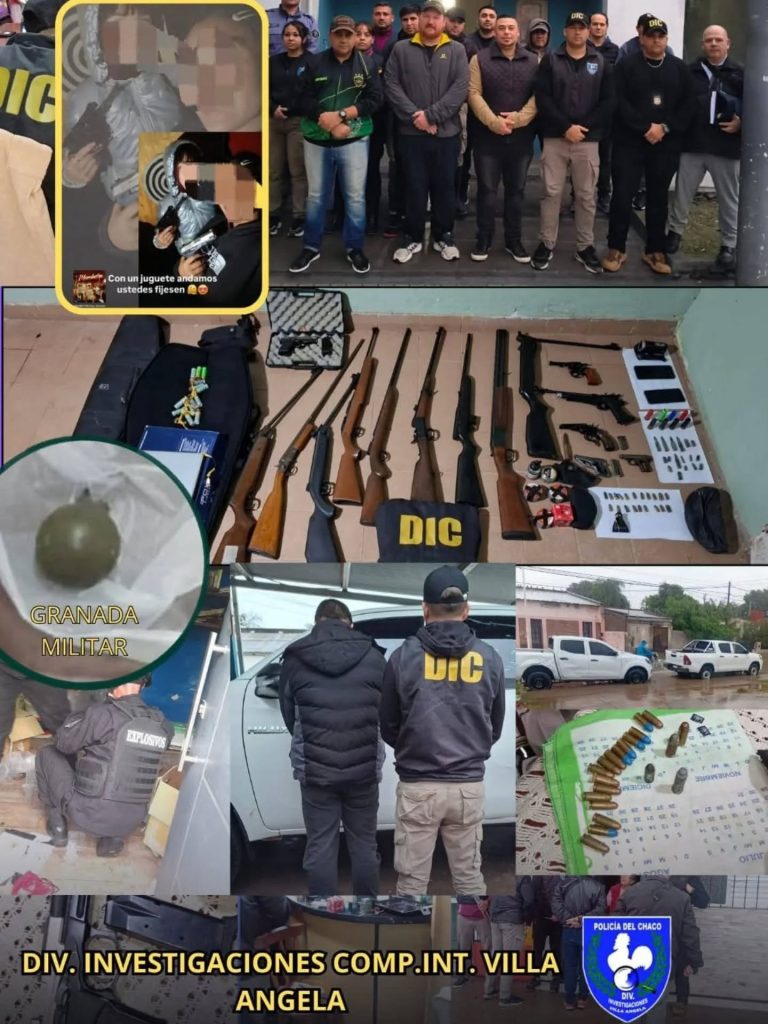 En el marco de una investigación por presunta intimidación pública e incitación a la violencia colectiva, la Policía del Chaco ejecutó un importante allanamiento en una vivienda ubicada sobre la calle Santa Cruz, en Villa Ángela. El operativo, que responde a la ola de amenazas en redes sociales, derivó en el hallazgo de material bélico de alta peligrosidad.